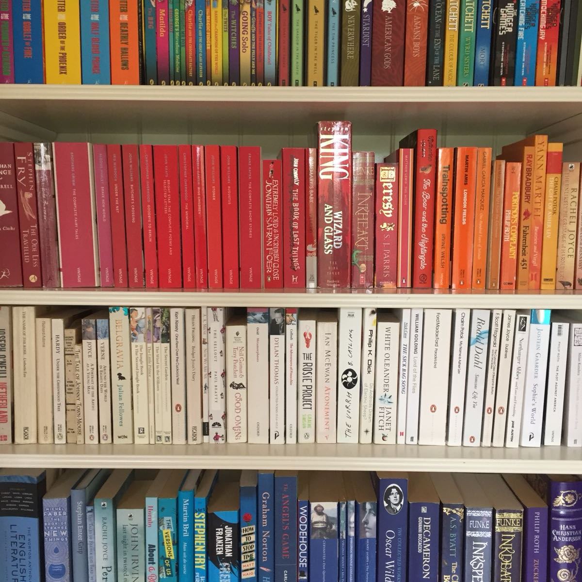 If you read on, you will find a way to organise your hundreds of books, scores of authors, and dozens of genres, in all ranges of colours, and it will no longer be an ordeal deciding where your latest acquisition should be placed. You will never lose track of your books again, and it will bring a smile to your face every time you look at your personalised bookcase. It’s quite easy, really, to organise your bookcase in your own, unique way. You just have to think about which method you will use, and then the fun can start!