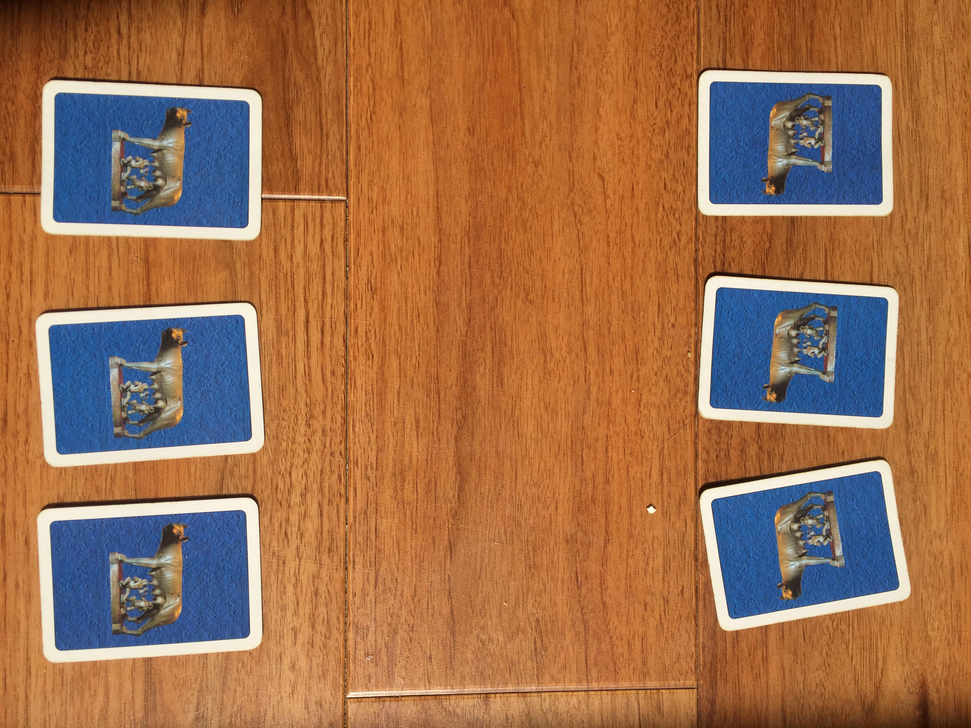 Did you forget about the six cards lying in front of you? I most certainly didn’t, your friend assures you, and I want to use them! Stupid rules. Well, you’re going to need them now.