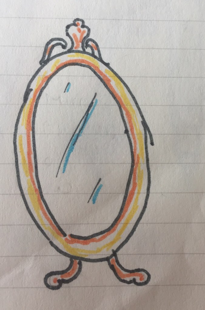 What happened to the mirror, you may wonder? Well, it lay forgotten on the sea shore. It might have been picked up years later, by an evil Queen of a neighbouring kingdom…