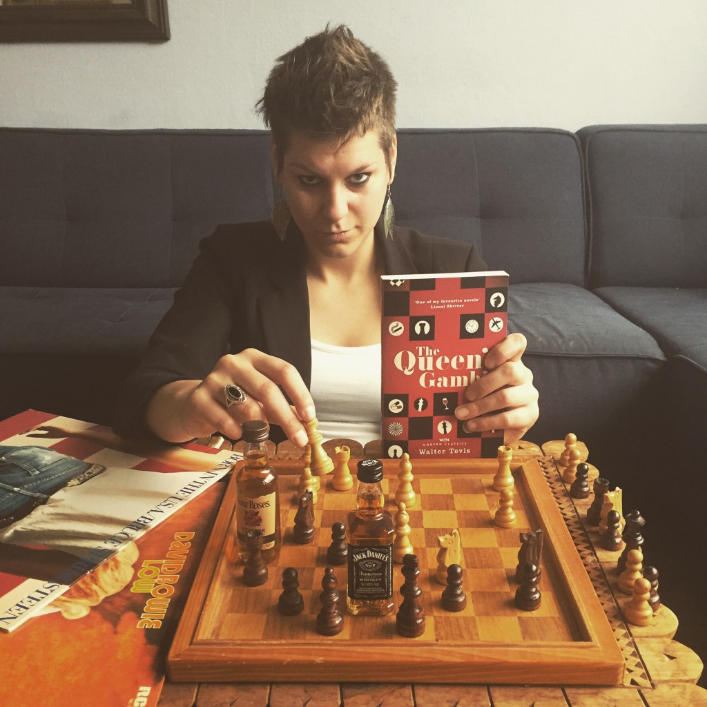 Coming up with the idea for this one was easy: I wanted my picture to look like the poster of the Netflix hit series The Queen’s Gambit. I only noticed the bottles on the poster after I had taken this picture and thought myself incredibly clever for adding them.