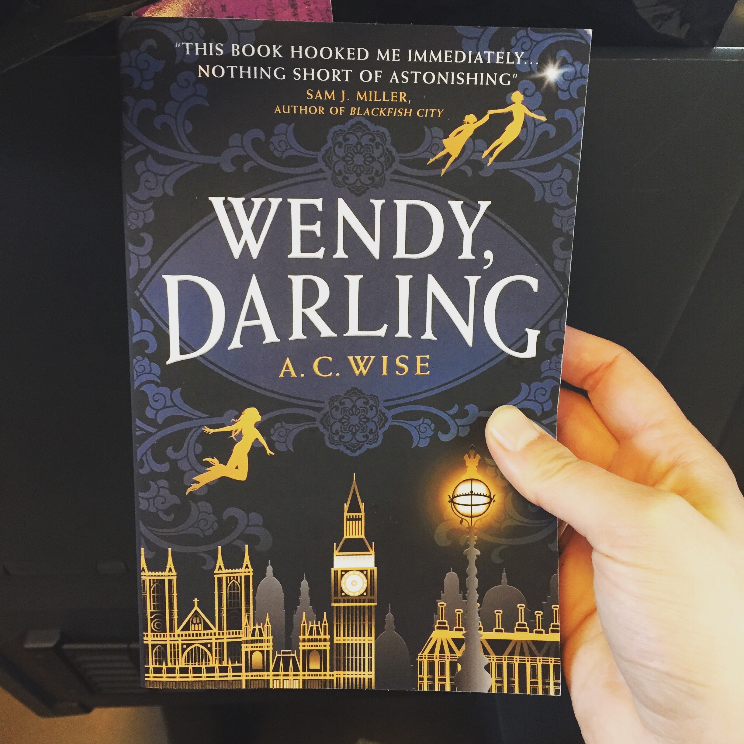 I love travelling by train. It’s fast, you don’t have to worry about the weather, and you literally can’t do anything. Apart from reading, that is. Whenever I am on the train, I make sure I bring enough to read – preferably a silly book which I can finish in one sitting and which doesn’t take too much brain power. I picked a new Peter Pan retelling: Wendy, Darling, by A. C. Wise. Will it be any good? Read on!
