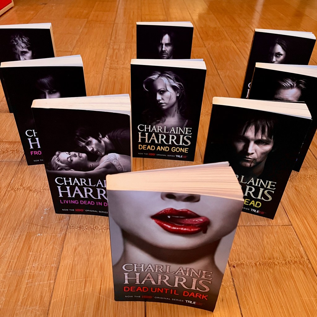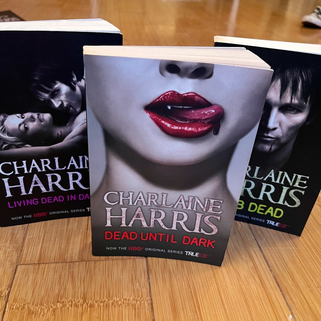 Right. If you’ve read some of my blog posts, you should know by now that I’m kind of a snob. I love good, literary stories, with as many philosophical and complex themes as possible. Charlaine Harris’s novels are nothing of the sort. They’re short, they’re very easy to read, and they’re not really about anything at all: the sex scenes between Sookie and her vampire Bill (or any other man, really) seem to be the highlights of each book. The only reason I started reading them is because I quite liked True Blood, the HBO series which was based on these novels. It was a hit series, and I devoured the episodes whole. The books never take me longer than three hours to read.