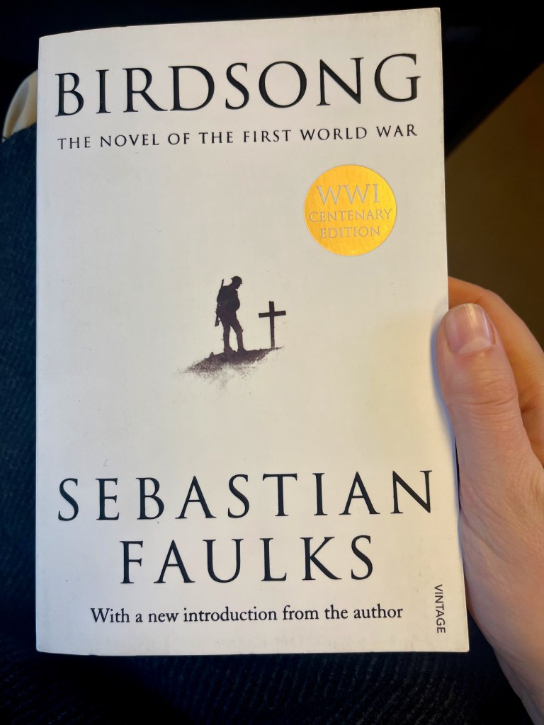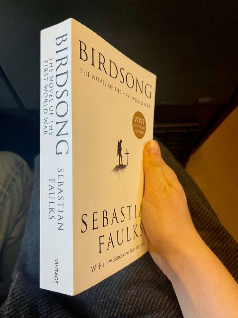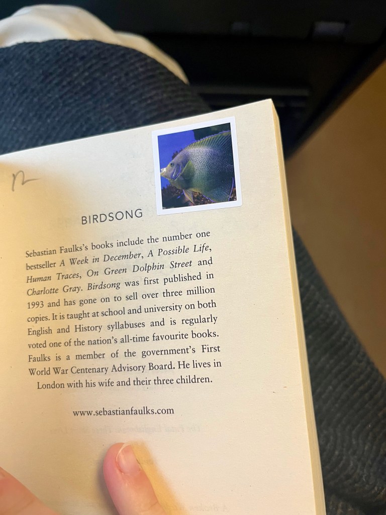 Turning the page, I quickly realised that I had just struck gold. Apparently, a person called Elise gifted this book to someone else who had just found a new job, back in 2015. This copy of Birdsong, apparently, had been sitting on the shelves of a bookshop for a whole year before Elise purchased it for her anonymous friend. I started thinking about why she thought this book would be a good fit.