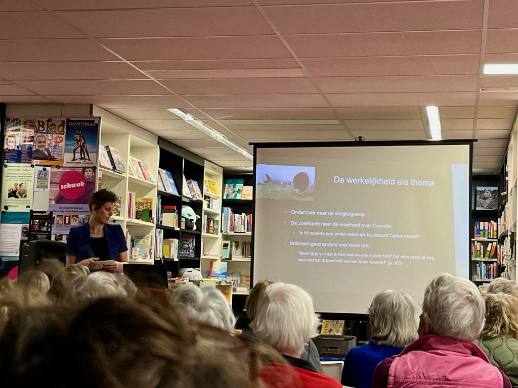 I kept going. I talked about choices Bakker had made, quoted from the book, made some jokes, and before I knew it, half an hour had passed. It was only until the bookshop’s owner asked me how much longer I was going to keep talking that I realised I hadn’t felt any nerves at all. I looked at him, muttered something about ‘maybe five minutes or something’, grinned at the audience, moved on to the next slide on my presentation, and talked (maybe a bit faster than I was planning to) about how this novel gives us a great insight in the author and the way he sees the world.
