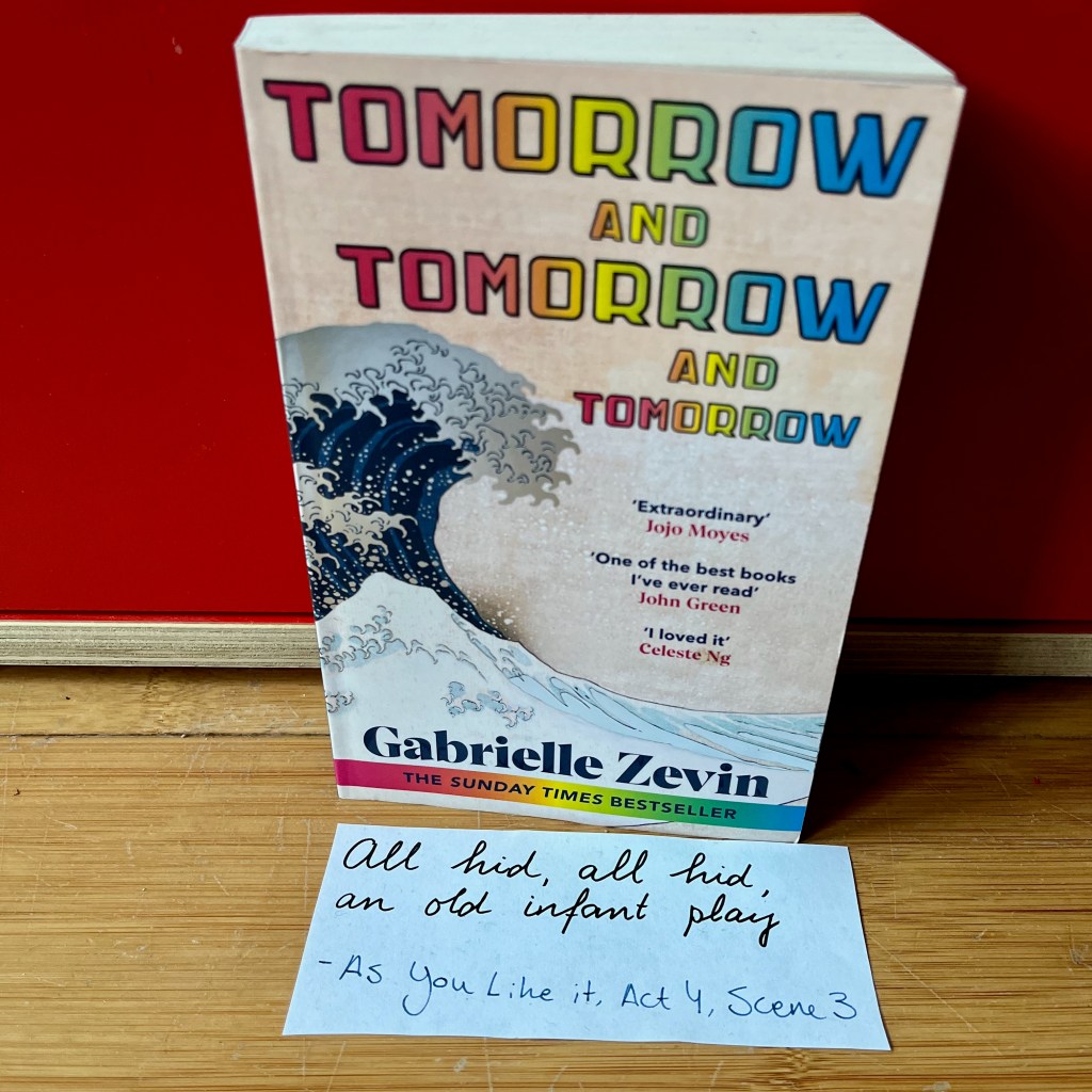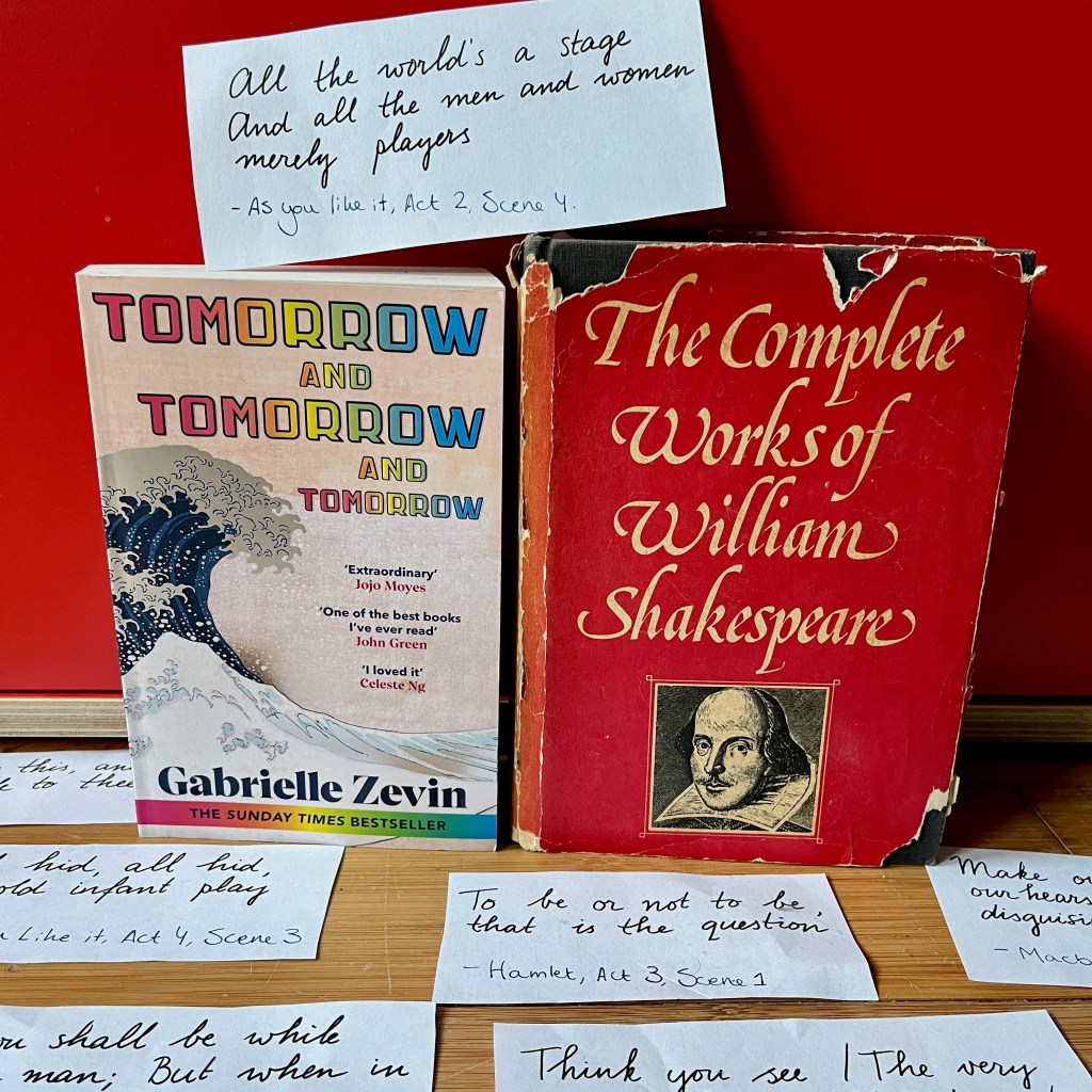 In conclusion, so much of Shakespeare’s work has been incorporated into Gabrielle Zevin’s novel Tomorrow, and Tomorrow, and Tomorrow, that finding textual references to the playwright almost becomes a game in itself. The novel is about life and death, about love and friendship, about betrayal, about sacrifice, about envy, about growing up, about secrets, about gender, and about playing game – basically what all of Shakespeare’s plays are about, too. Like I said, it is almost impossible to find a novel which isn’t partly inspired by Shakespeare – needless to say, Zevin was heavily inspired by him. And so his name, his language, and his stories are still used today. So will they be tomorrow. And tomorrow. And tomorrow.